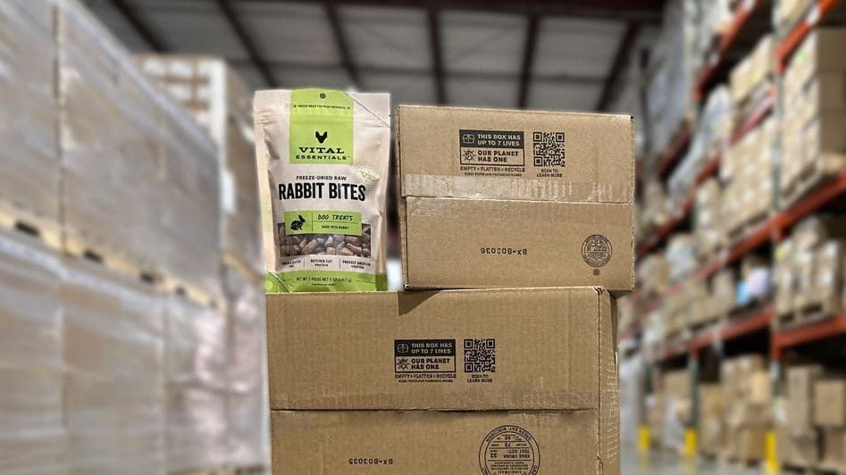 VE RAW BAR products are clearly identifiable, as they are distributed to independent pet stores in gas flushed, heat-sealed and tamper evident master bags. The bags are identified by barcode, lot number and date code for ease of inventory management and traceability. Retailers may open bags, as needed, to refill VE RAW BAR merchandise displays. The displays include nutritional facts and feeding guidelines, so that pet parents are well informed about the snacks they’re feeding at home.