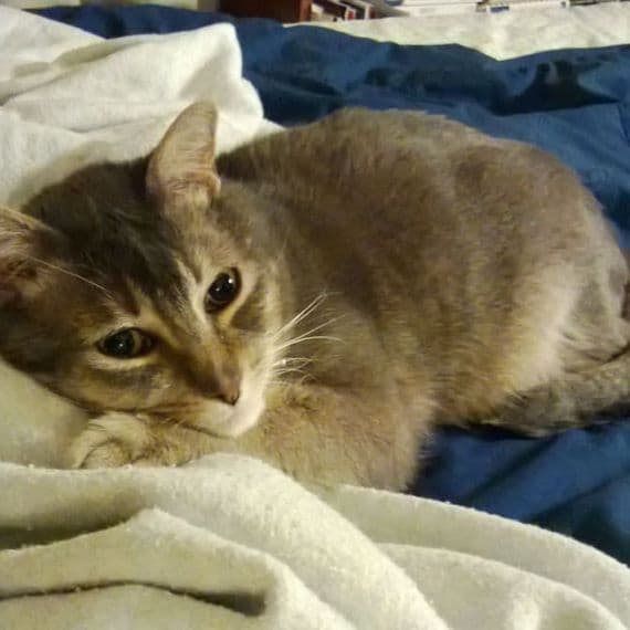 "Leeloo was a stray kitten near garbage cans when she found me. We have a very strong bond and now her life is awesome with me. She loves all of VE products. She will usually get really excited and meows along when I am preparing her meals. Pure happiness."